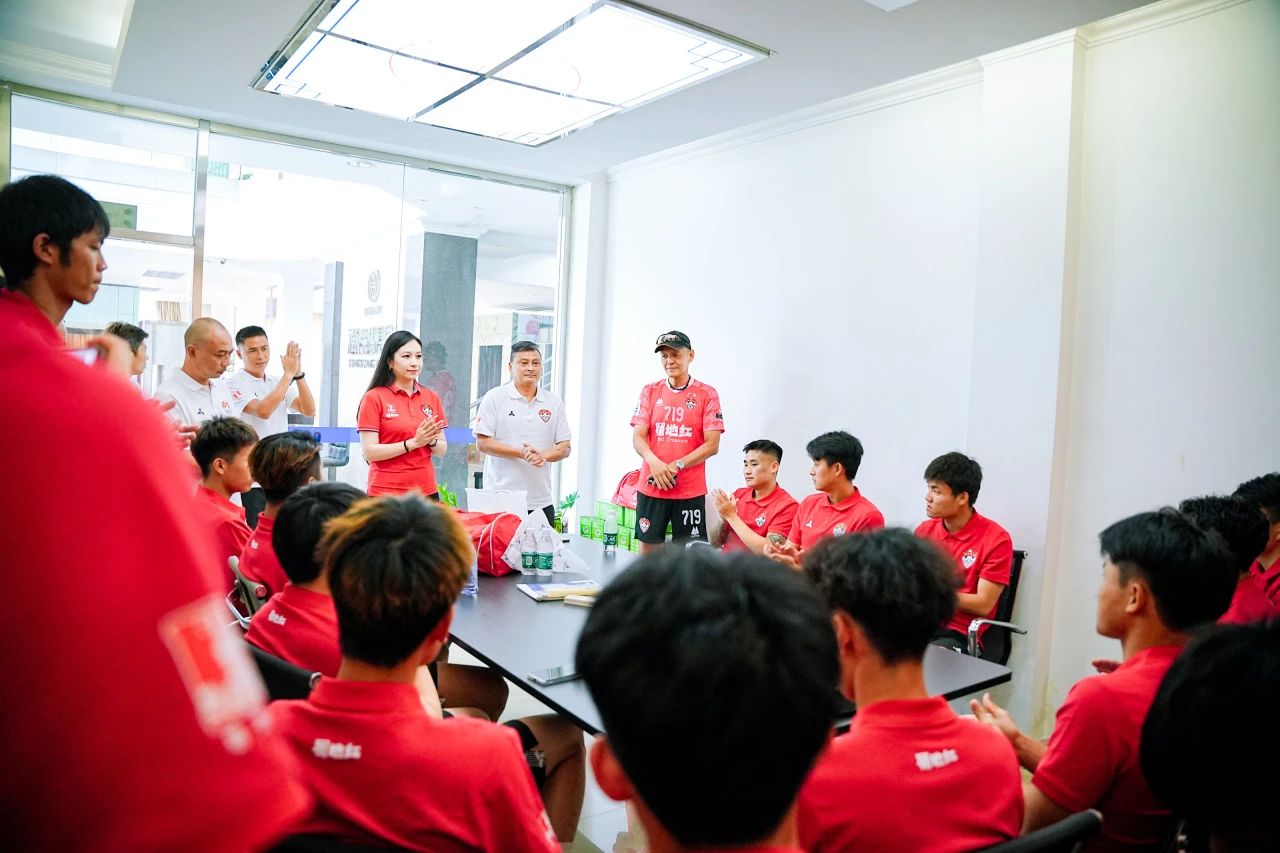 作为广东蜀地红足球俱乐部的赞助商,蜀地红酒业总经理何丽丽女士亲自到场为队员加油鼓劲。何丽丽女士在致辞中表示,我们不仅仅是在启动一场赛事的征程,更是在见证广东足球精神的传承与发扬。我们所走的每一步,都凝聚着对足球纯粹的热爱与不懈的追求。让我们携手并进,为广州,为广东,乃至全国的球迷朋友们带来更多精彩绝伦的比赛。