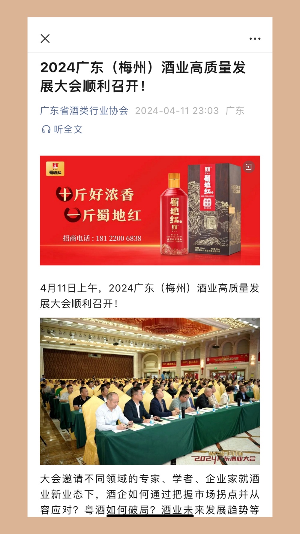 蜀地红酒业热烈祝贺2024广东酒业大会圆满落幕
