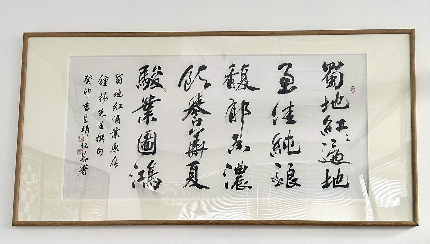 值得一提的是,在蜀地红酒业的办公室珍藏着何伯昌大师所赠予的墨宝。