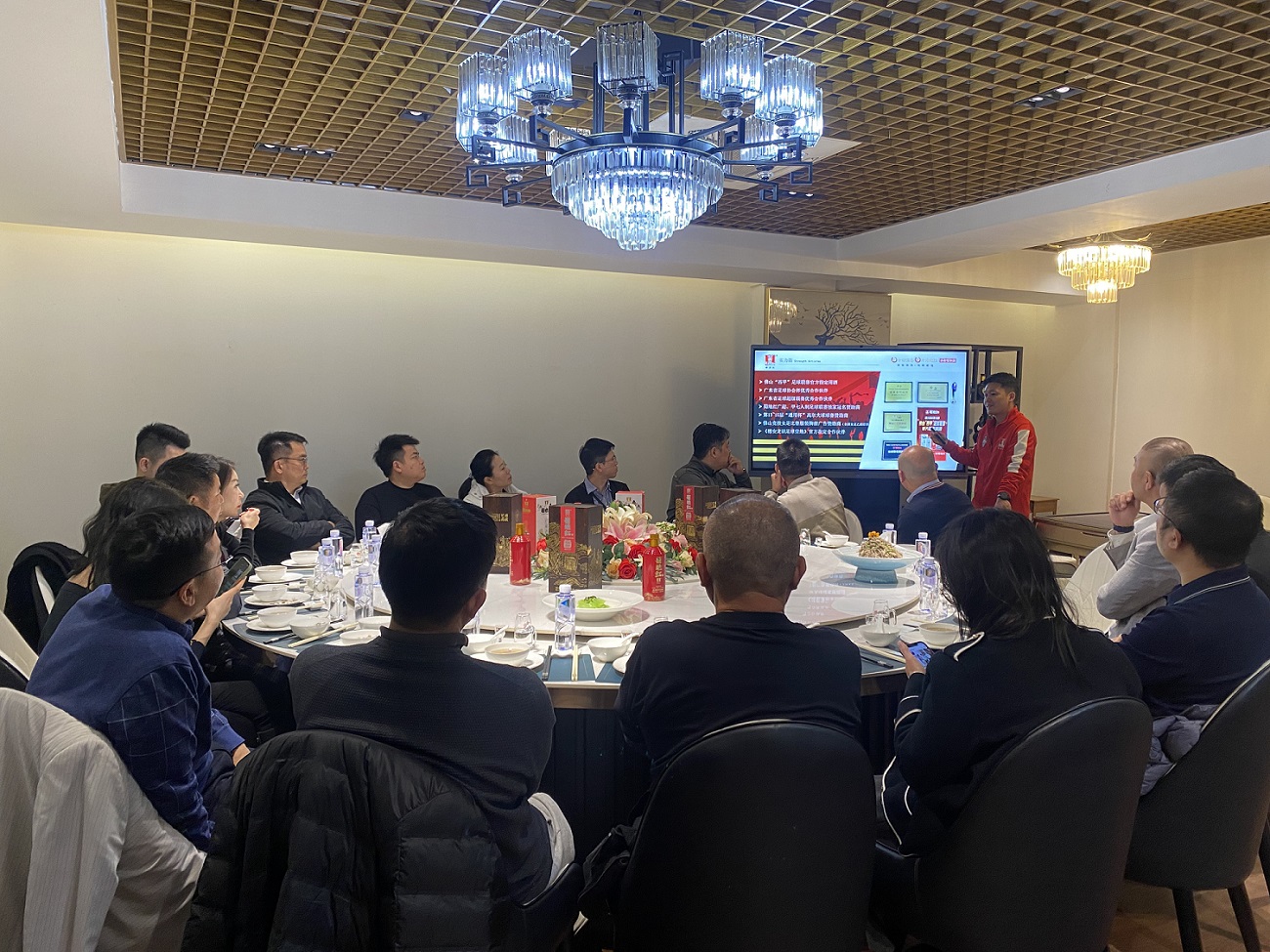 随后,蜀地红酒业销售经理黄剑文先生通过PPT向来宾们讲述了蜀地红的品牌故事,从品牌创立之初到今日取得的辉煌成就,每个细节都彰显出蜀地红酒业对于品质的不懈追求和对中国传统文化的尊重。黄经理强调,蜀地红酒业一直致力于将传统酿造工艺与现代科技相结合,既保留了古老技艺的核心价值,又融入了时代创新元素,确保每一瓶白酒都能达到最高的质量标准。这种传承与创新并重的理念获得了现场嘉宾的一致好评。