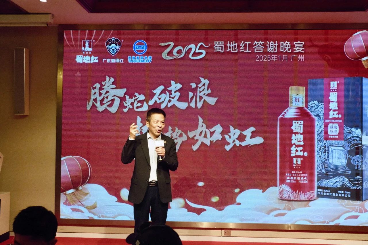 随后,广东省酒类行业协会会长彭洪先生和广州酒类行业协会会长陈鹏先生分别发言,高度评价了蜀地红酒业在过去一年中的卓越表现,特别是在产品开发、市场营销和社会责任等方面取得的成绩。