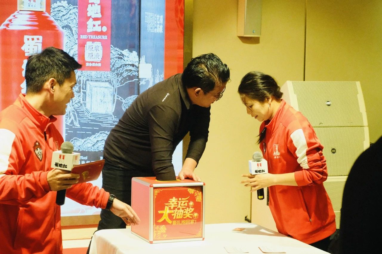 为了表达对合作伙伴和朋友们的感激之情,蜀地红酒业精心安排了一系列抽奖活动,奖品从实用的日用品到珍贵的茶叶礼盒,再到高级的蜀地红原浆酒,甚至现金大奖就有100个名额,每次开奖都让现场气氛高涨。特别值得一提的是,蜀地红酒业还设计了一个名为“集赞王”的社交媒体互动游戏,参与者只需分享活动现场的照片并收集点赞即可参与竞争,最终三位现场嘉宾获得精美礼品。