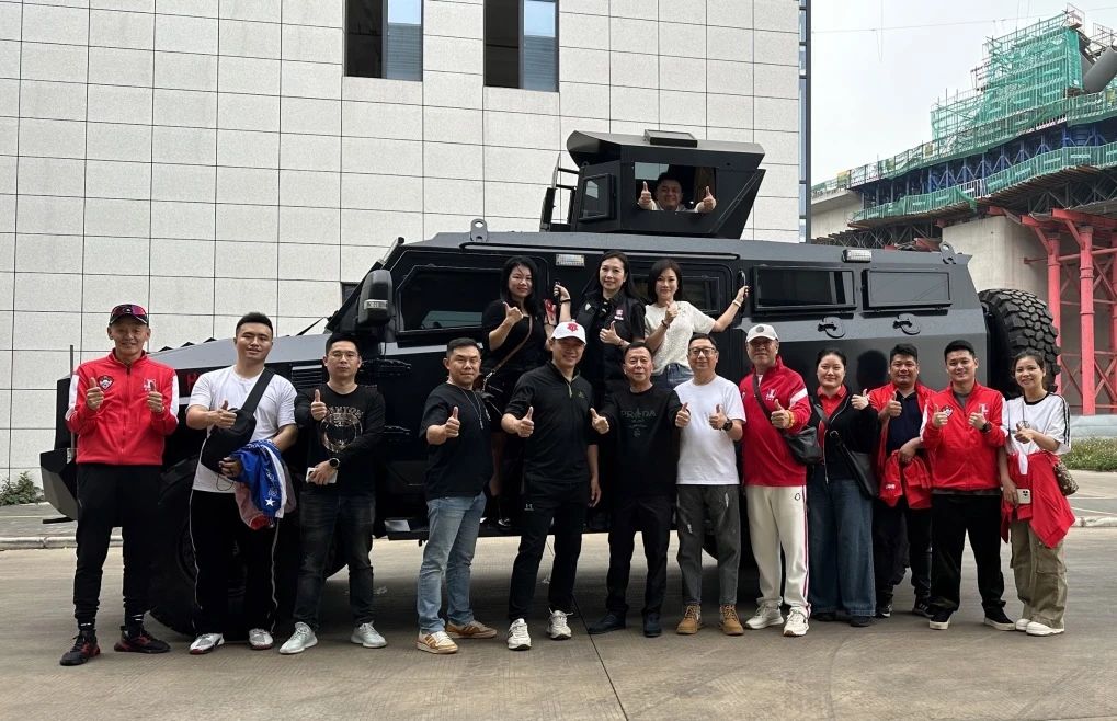 蜀地红酒业总经理何丽丽女士及其团队热情接待了来访的贵宾,通过一系列精心设计的活动,先展现了总部分公司装甲车的卓越性能,包括观看了视频展示、听取了现场技术介绍并亲自体验了试乘试驾,让来宾亲身感受到了装甲车的震撼魅力及期待跨界合作带来的无限可能。