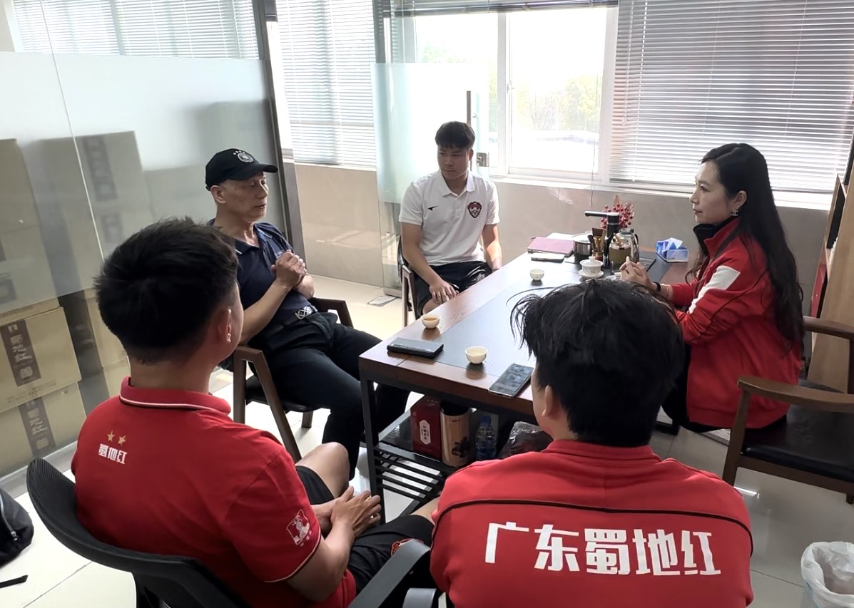 近日,久居德国的中国足球名宿古广明前辈再次到访蜀地红酒业,与蜀地红酒业总经理何丽丽女士等人进行了愉快的交流。在此期间,古广明前辈不仅亲自为蜀地红足球队的队员们示范并传授了宝贵的足球技巧和经验,还分享了他在德国足坛积累多年的珍贵心得。从他个人在欧洲足坛的实战经历到对中国足球未来发展的深刻见解,古广明前辈的分享让队员们受益匪浅,并获得了难得的现场亲身示范指导。这次交流不仅加深了队员们的技战术理解,也为他们提供了宝贵的精神激励。