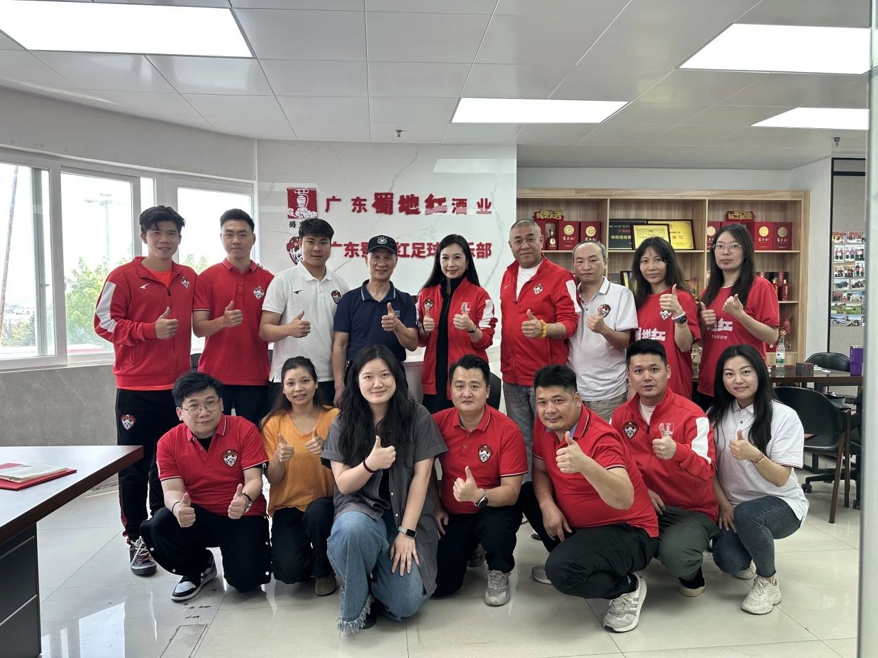 在一片欢声笑语和热烈的交流氛围中,古广明前辈亲切地与蜀地红酒业的工作人员及蜀地红足球队的队员们合影留念。这些合影不仅是此次愉快相聚的美好回忆,也标志着双方友谊开启了新的篇章。展望未来,无论是在绿茵场上的拼搏,还是在白酒文化的深度交流中,这份珍贵的情谊都将持续发挥积极影响,激励更多人追求卓越、致力于传承与发展。这不仅适用于中国足球的成长,也同样适用于中国白酒文化的弘扬。合影结束后,大家怀着满心的感激与不舍,期待着下一次更加精彩的重逢。