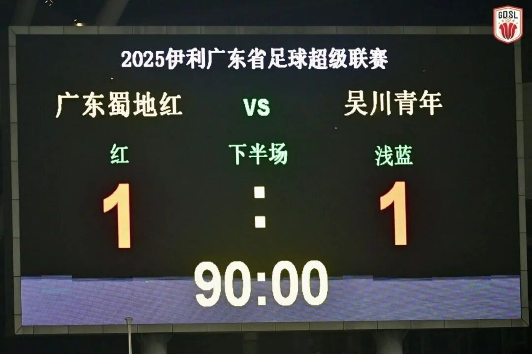 2025年11月29日,佛山南海体育中心见证了一场足以载入广东足球史册的经典对决。在广东省足球超级联赛(简称“省超”)四强战次回合中,广东蜀地红再次对阵吴川青年。双方在90分钟内战成1:1平局,随后鏖战15轮点球大战,最终蜀地红以13:14惜败,无缘决赛。