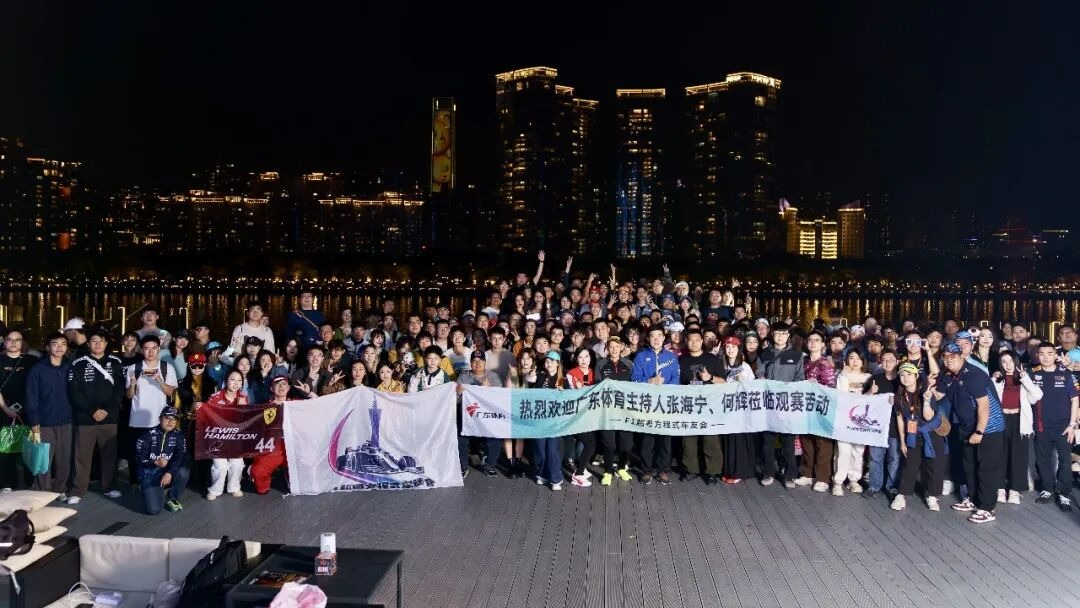 12月7日晚,广州珠江畔灯火璀璨,广东体育频道&F1超粤方程式车迷会,在2025赛季F1阿布扎比收官战前夕,举办了一场热血与温情并存的线下观赛活动。现场逾600名车迷齐聚一堂,挥舞应援旗帜、高呼车队口号,在引擎轰鸣尚未响起之前,先以满腔热情点燃了这个冬夜。广东体育频道著名主持人张海宁先生、何辉先生、蜀地红酒业总经理何丽丽女士一同出席。观赛前,张海宁、何辉先生与车迷们分享了自己多年观赛及评述的心得与感悟,并畅谈对本赛季收官战的期待,点燃了全场的热情。
