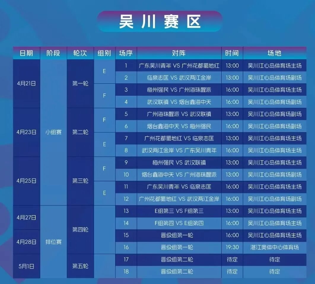 根据赛程安排,广州花都蜀地红队还将在吴川赛区迎来两轮小组赛:
